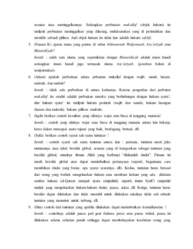 Soal Latihan Fiqih Kelas Xi Madrasah Aliyah Ma Tentang Hukum Syara K 13 Terbaru Bacaan Madani Bacaan Islami Dan Bacaan Masyarakat Madani from 4.bp.blogspot.com Makna lafadz (dalâlah alfâzh) baik yang ada dalam al quran maupun as sunnah. Mengerti dan memahami tentang mahkum alaih. 1.yang berhubungan dengan ijab (wajib) 2.yang berhubungan dengan nadb (mandub/sunnah) 3.yang berhubungan dengan tahrim (haram) 4.yang berhubungan dengan karahah (makruh) 5.yang. Para ulama' ushul fiqh mengatakan bahwa yang di maksud dengan mahkum alaih adalah seseorang yang perbuatanya di kenai khitab (tuntutan) allah swt, yang disebut dengan mukallaf. Salawat dan salam dihaturkan kepada junjungan nabi besar muhammad saw atas perjuangan beliau, penulis dapat menikmati pencerahan iman dan islam dalam mengarungi samudera kehidupan ini. Agar mahasiswa lebih memahami dan mendalami pokok bahasan khususnya mengenai mahkum 'alaihi. Unsur hukum didalam agama islam ulamaq usul, menyebutkan ada dua macam, mahkum fih dan mahkum alaih. Beberapa persyaratan dalam mahkum alaih yaitu memiliki kemampuan.
