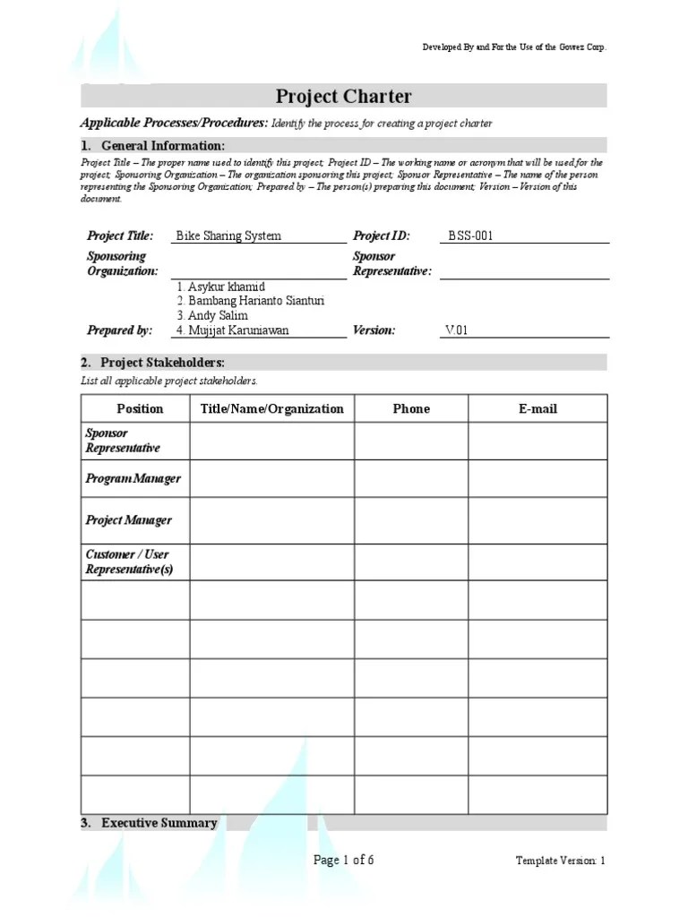 Gambar terkait dengan project charter contoh. Dilihat dari beberapa hal yaitu masih ada yang membeli bbm dengan jerigen menimbun bbm untuk stok bbm jika bbm langka masih banyak orang mampu membeli bbm bersubsidi. Yudhi dwi cahyo (a12.2011.04396) representative client : Smartsheet.com has been visited by 10k+ users in the past month Apr 17, 2016 · project charter purpose;