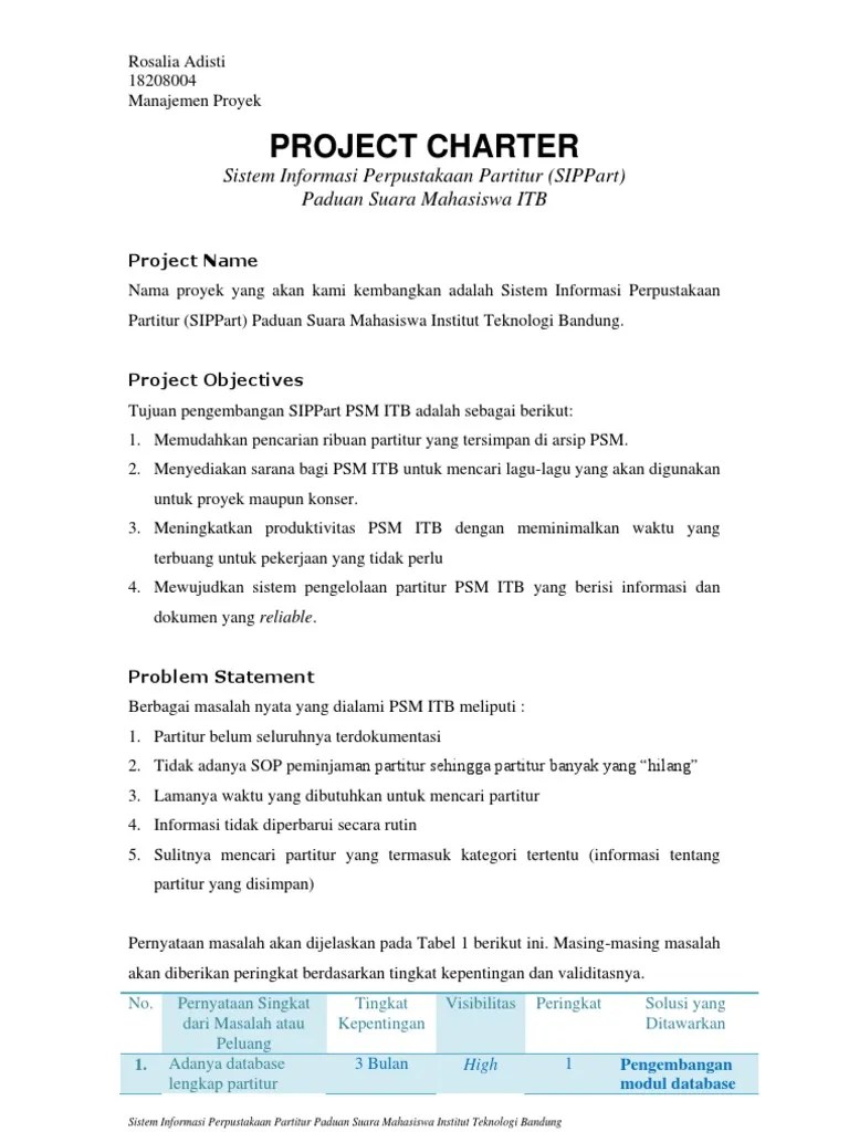 Mar 06, 2017 · contoh project charter: Jun 06, 2017 · in terms of project management, a project charter (also known as a project statement of project definition) is a report of the whole scope, all the objectives, and the members who are involved in the project. Gambar terkait dengan project charter contoh. Dilihat dari beberapa hal yaitu masih ada yang membeli bbm dengan jerigen menimbun bbm untuk stok bbm jika bbm langka masih banyak orang mampu membeli bbm bersubsidi. Putri aprilla kd (a12.2011.04412) head of software departement :