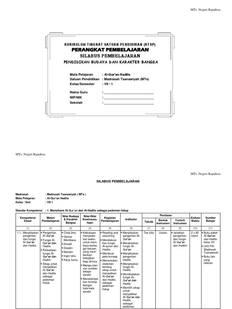 Rpp Qur'an Hadits Kelas 10 Semester 1 Kurikulum 2013 - Silabus Qur An Hadits Kelas 8 Kurikulum 2013 Revisi 2020 Sch Paperplane - Keberadaan buku ajar dalam penerapan kurikulum 2013 di madrasah.
